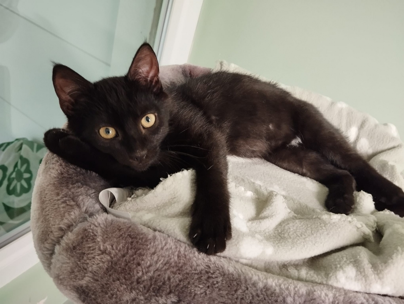 Blinzel kam gemeinsam mit seinen Geschwistern und seiner Mutter zu uns ins Tierheim.