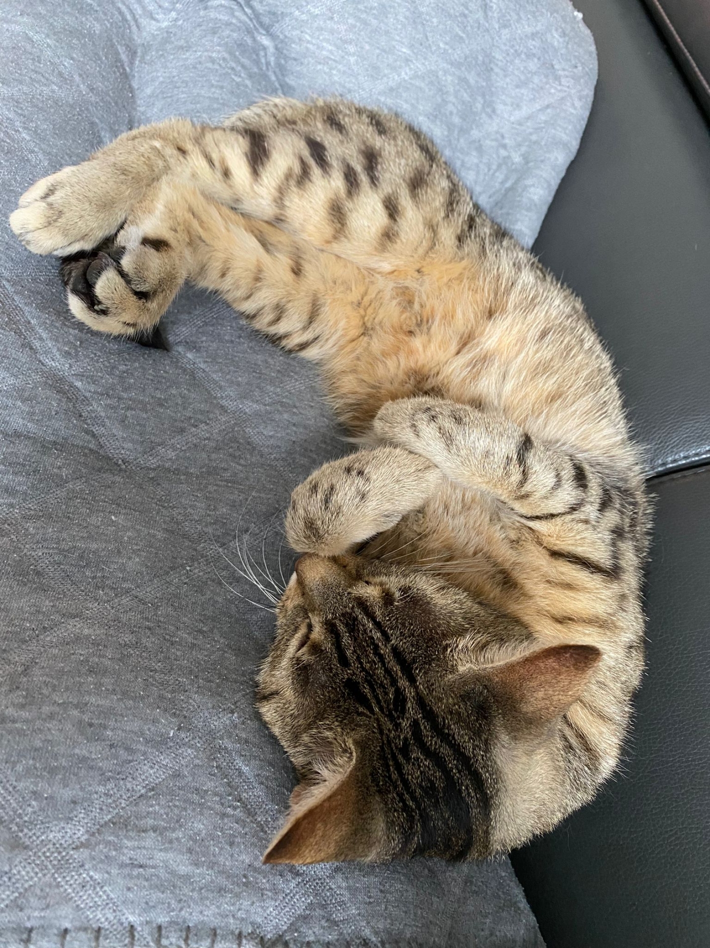 Mr. Kate ist ein grauer, sehr verschmuster Kater. Er liebt es unter dem Bauch gestreichelt zu werden. Er miaut sehr laut. Unter dem Bauch hat er braun/rötliches Fell.