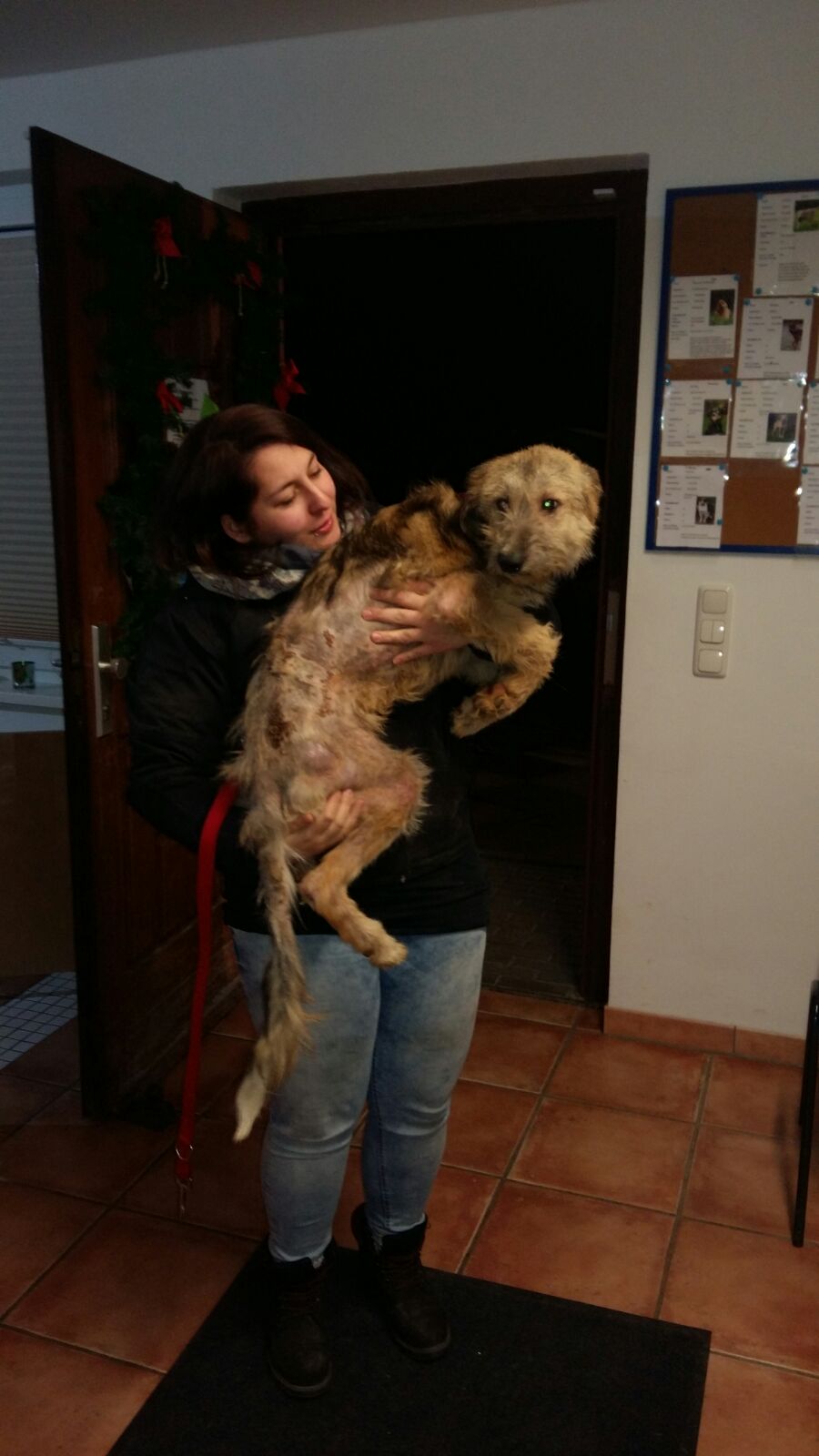 Kurz vor Weihnachten erreichten uns wieder einmal erschütternde Bilder von Pro Dog Romania e.V. : Zwei Welpen und eine junge Hündin waren aufgrund Demodex-Milben, die in rumänischen Tierheimen aufgrund der schlechten Hygienebedingungen und Futterversorgung leichtes Spiel haben, fast nackt und mit Wunden übersät. Sie versuchten alle möglichst nur in den runden Fressschalen aus Gummi zu sitzen, um nicht mit dem eiskalten Boden in Berührung zu kommen. Nachdem der kleine Rüde Silas morgens schon völlig unterkühlt im Zwinger vorgefunden und auf die Krankenstation gekommen war, haben wir entschieden: Hier müssen wir dringend helfen!