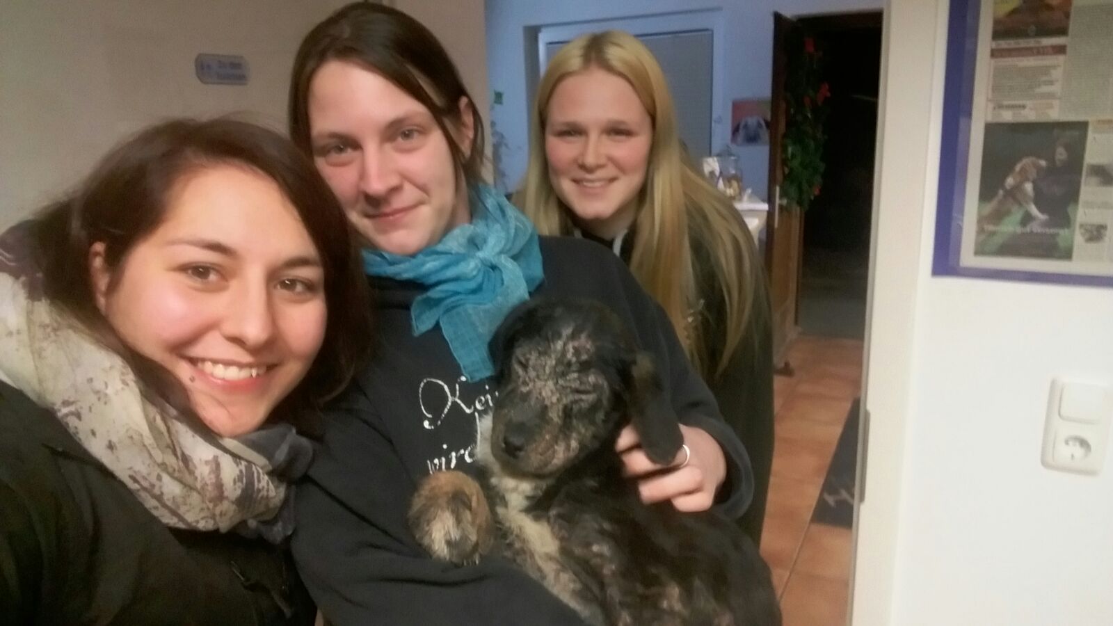 Am 30.12.2016 kamen die drei "Nackedeis" mit dem letzten Transport vor Wintereinbruch und 6 Stunden Verspätung heile im Tierheim Delitzsch in Deutschland an. Dort holten unsere Pflegerinnen Anna Kiske, Diandra Boczek und Stella Kratz die Hunde ab und kamen in den frühen Morgenstunden in Burgdorf an.