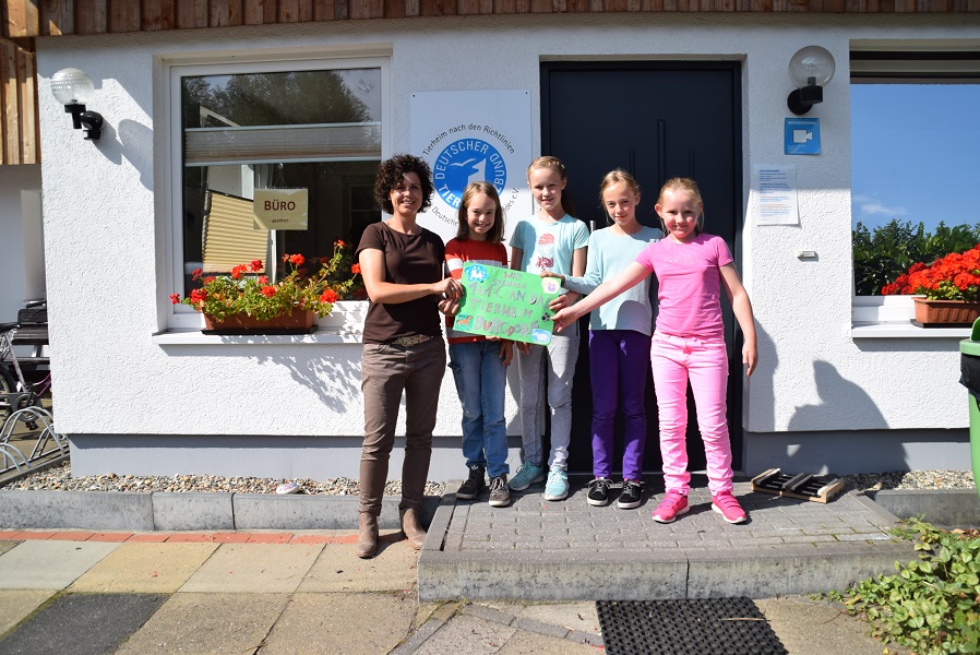 Nele, Katja, Julia und Pauline überbrachten uns heute eine Spende in Höhe von Euro 151,00, die sie mit, wie wir finden sehr viel Mut, für unser Tierheim gesammelt haben. Durch den Gesang von Tier-Liedern nahm das junge Mädels-Quartett diese tolle Summe ein.