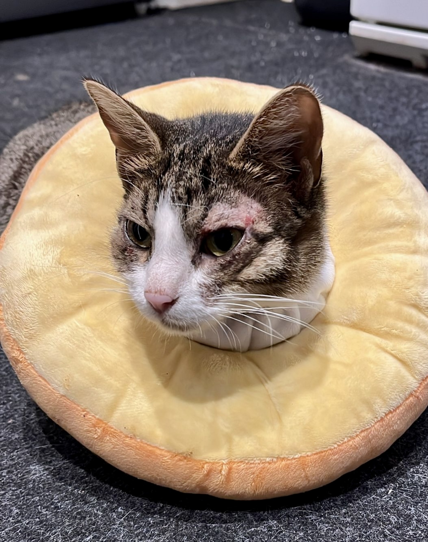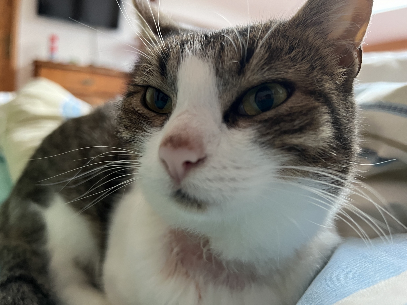 Ursprünglich pumperlgesund kam Molly aus Kroatien und wurde in eine turbulente Familie mit 2 Katzen und 3 Kindern vermittelt. Dort lief Anfangs alles super, allerdings bekam sie leider zunehmend epileptische Anfälle. Vermutet wurde, dass es ihr im Alltag zu stressig war, sie bekam Medikamente, doch es wurde schlimmer. Zudem kratzte sie sich blutig. Ich nahm die kleine, super verschmuste Katze kurz vor Weihnachten zurück und sie zog bei einer guten Freundin und Tierschützerin als Pflegling ein. Aktuell ist sie immer noch in Behandlung, es kann gut sein, dass sie dauerhaft Medikamente bekommen muss. Wir sind noch lange nicht am Ende und die Anfälle, sowie eine Hautproblematik verlangen der Pflegemama viel ab. Gerade versuchen wir sie auf ein neues Medikament einzustellen, da wir die Ursache für den Juckreiz im Phenobarbitol vermuten. Erschwerend kommt hinzu, dass dort für Molly zu viele Katzen sind, die auch ab und zu wechseln.