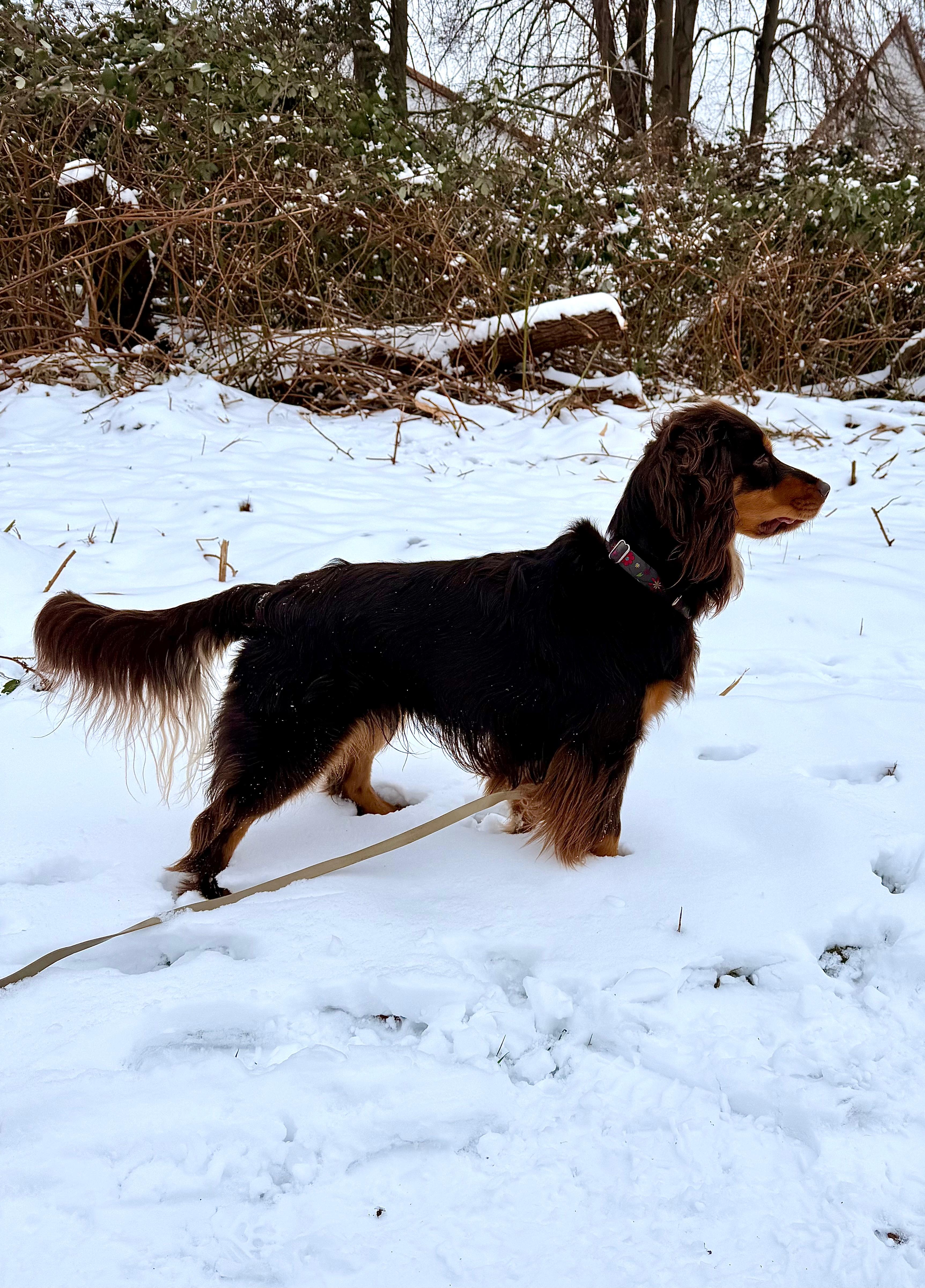 Buddy ist mit seiner Nase sehr aktiv und könnte vielleicht fürs Mantrailing interessant sein. Dies würde ihn auch im Bezug auf den positiven Kontakt mit fremden Menschen und der Umwelt weiterbringen und eine schöne Möglichkeit zur mentalen Auslastung.