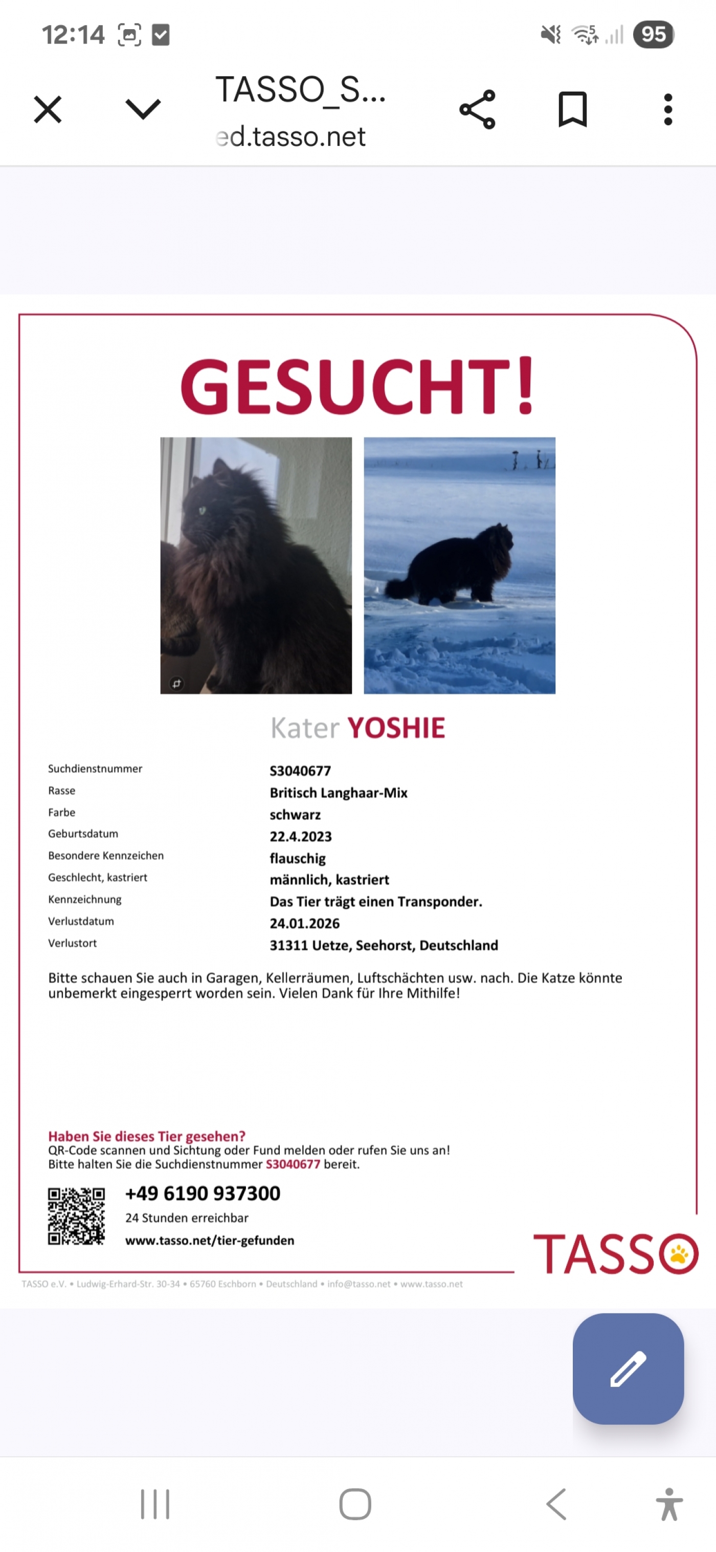 Bei Informationen über dessen Verbleib, bitte im Tierheim unter der 05136 3545 oder direkt beim Besitzer Kuhn unter der Rufnummer 05173/922953 melden.