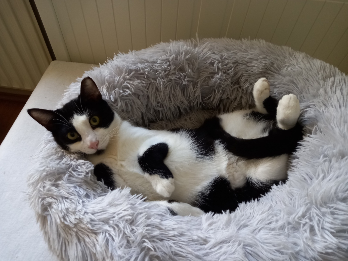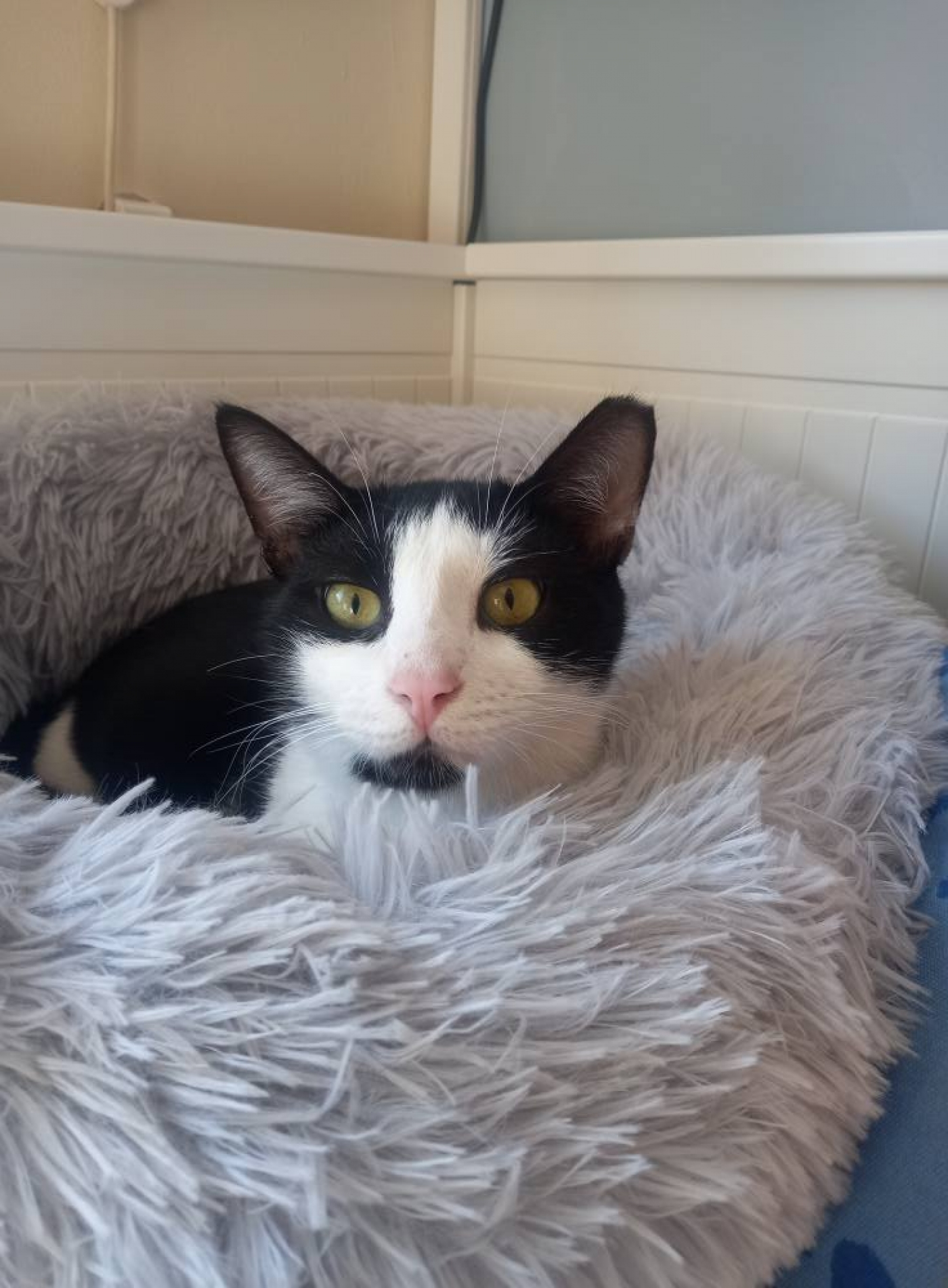 Felix ist der Bruder von Kleopatra, beide bzw. drei (mit ihrem Ziehvater Ufo) stammen aus der Türkei, wo sie von der Straße gerettet und in einer Pflegestelle liebevoll aufgezogen wurden. Felix ist ein noch etwas handscheuer kleiner Kerl, der gerne rauft und tobt. Von daher sollte er zu einem gleichaltrigen Kumpel, keinesfalls sollte er allein gehalten werden. Seiner Schwester ist er zu wild und sie flüchtet oft vor ihm nach draußen. Wir haben eine Katzenklappe, durch die Felix aber (noch) nicht geht. Er spielt gerne mit Bällchen, die er auch gerne herumträgt. Auch das Fummelbrett hat er schnell kapiert und räumt es schnell leer. Ansonsten ist er ein ruhiger Vertreter, der dem Menschen noch nicht zu 100 % vertraut.