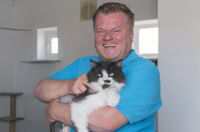 Tierschutzbund-Präsident Thomas Schröder mit Tierheimkatze