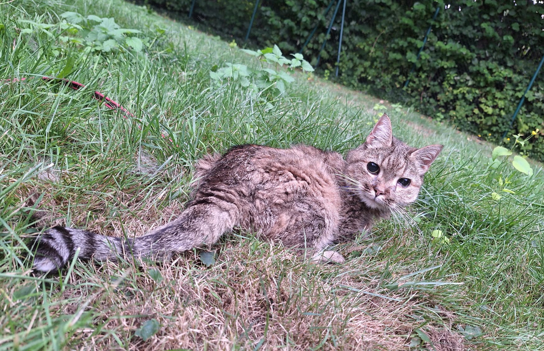 Es war ein regnerischer und stürmischer Samstag im Herbst, als wir einen Anruf einer jungen Frau erhielten, die uns mit aufgeregter Stimmer erzählte, dass sie unter einer Hecke eine Katze entdeckt hat, die offensichtlich krank ist. „Sie liegt dort schon seit Stunden, zittert und kann nicht laufen“ waren ihre Worte und so machten wir uns direkt auf den Weg.